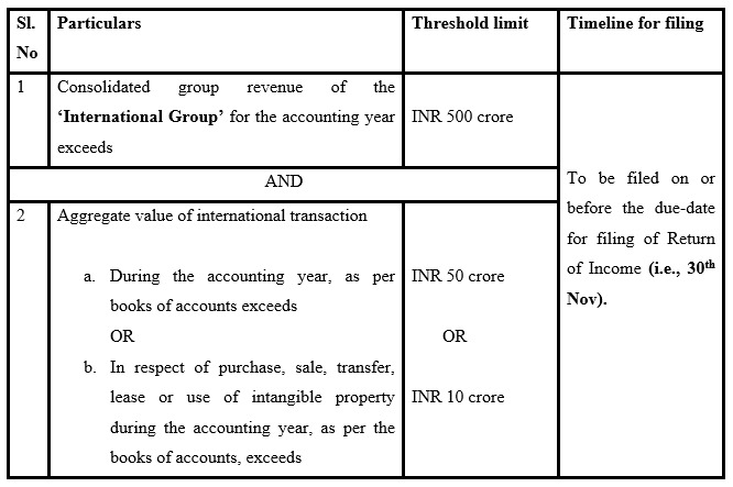- Transfer Pricing Report is to be maintained mandatorily if the aggregate value of international transactions during the Financial Year exceeds 1 Crore.